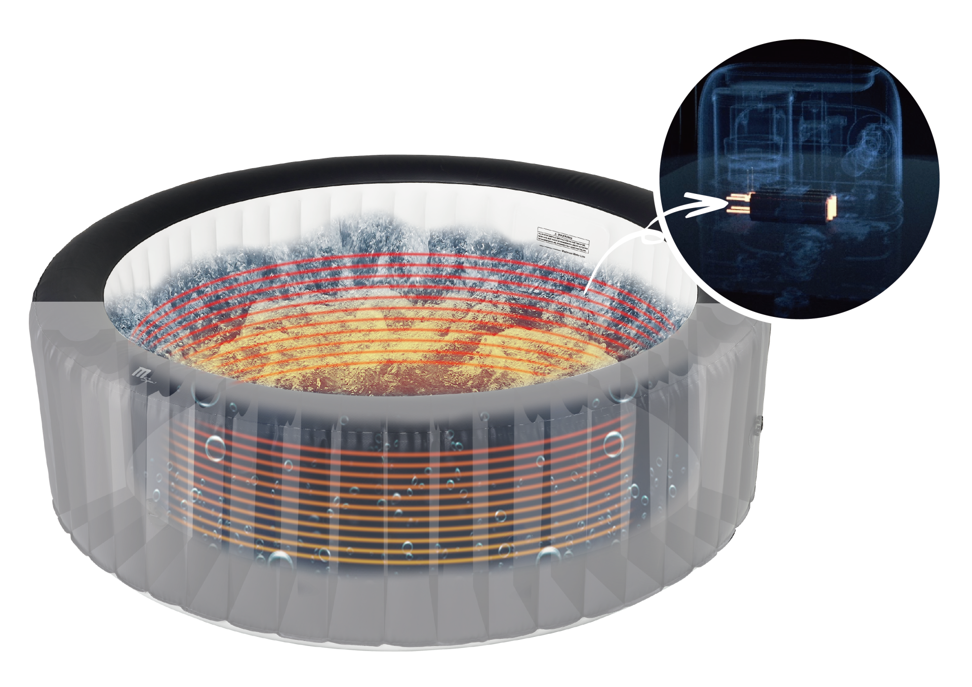 Our ultra stiff DWF material is unlike any traditional inflatable. Tens of thousands of high-strength threads are pulled taut to support the spa from within and prevent stretching while adding superior stiffness. The material allows us to keep the inflatable liners aesthetically thin without losing performance.